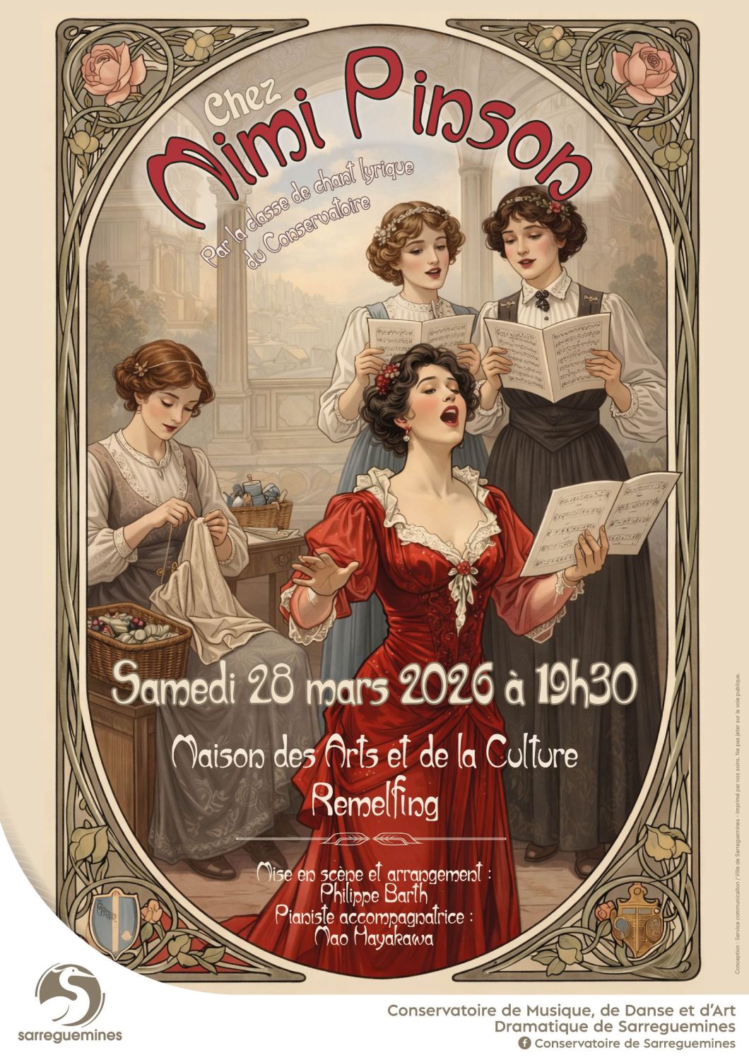 Pour rappel, la classe lyrique du Conservatoire de Sarreguemines vous invite à leur nouvelle opérette "Chez Mimi Pinson" ???????? Un spectacle mis en scène et arrangé par Philippe Barth, accompagné au piano par Mao Mayakawa.